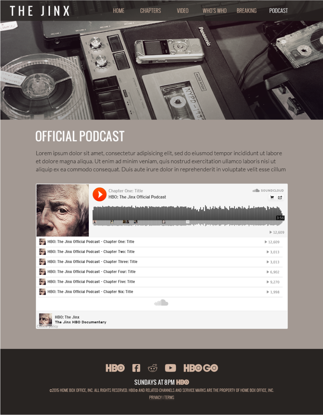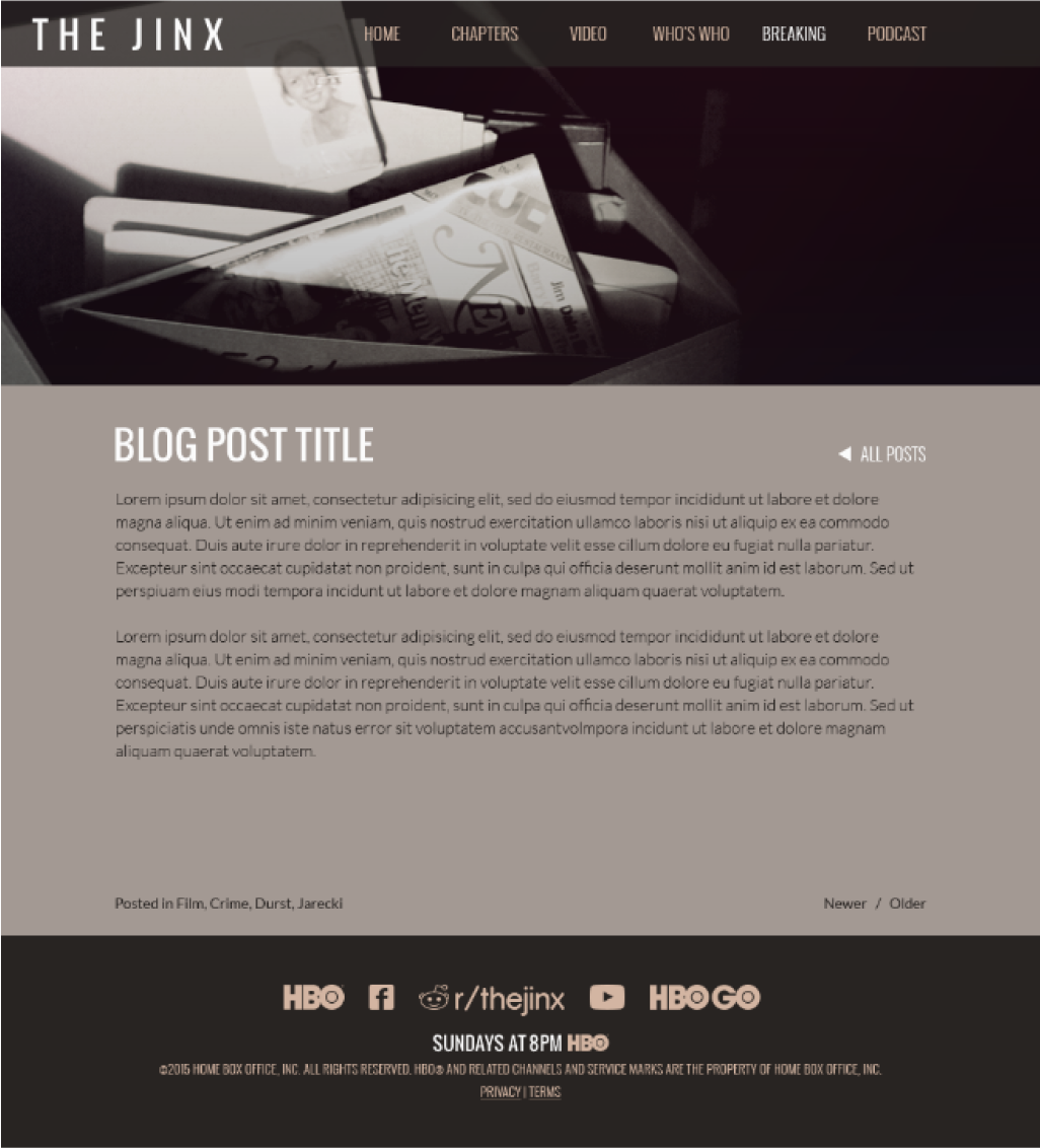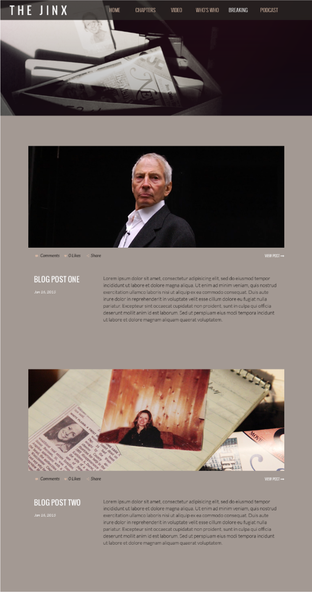 I created a page as a dedicated reference point for all individuals involved in the show. This included everyone from the show’s main subject, Robert Durst, to the people he grew up with, the investigators involved in the crimes documented in the show, and everyone else right down to the show’s creators, Andrew Jarecki and Marc Smerling.