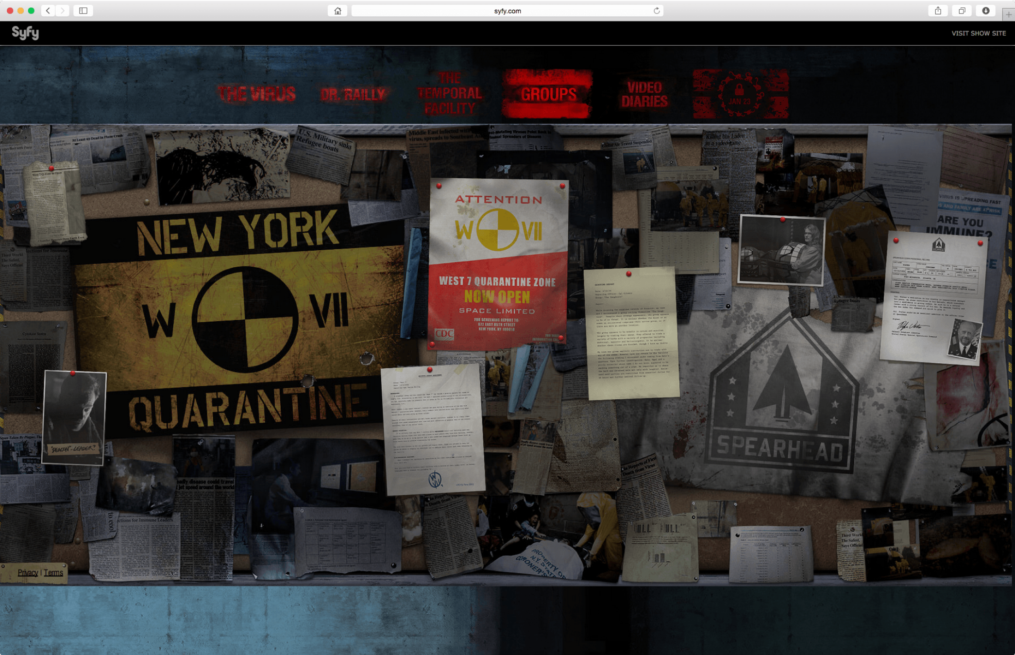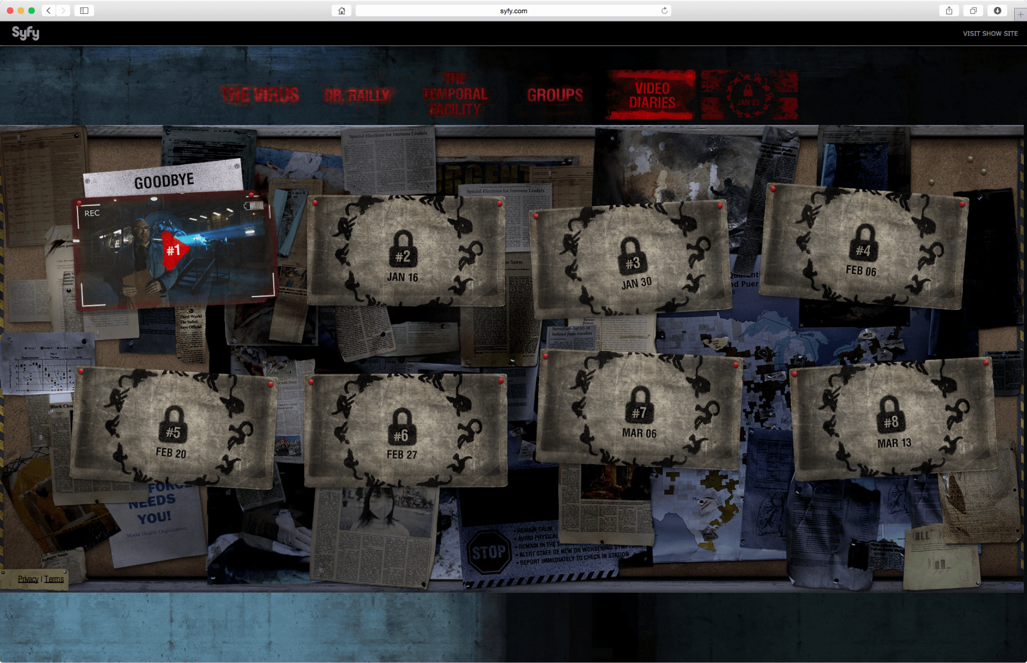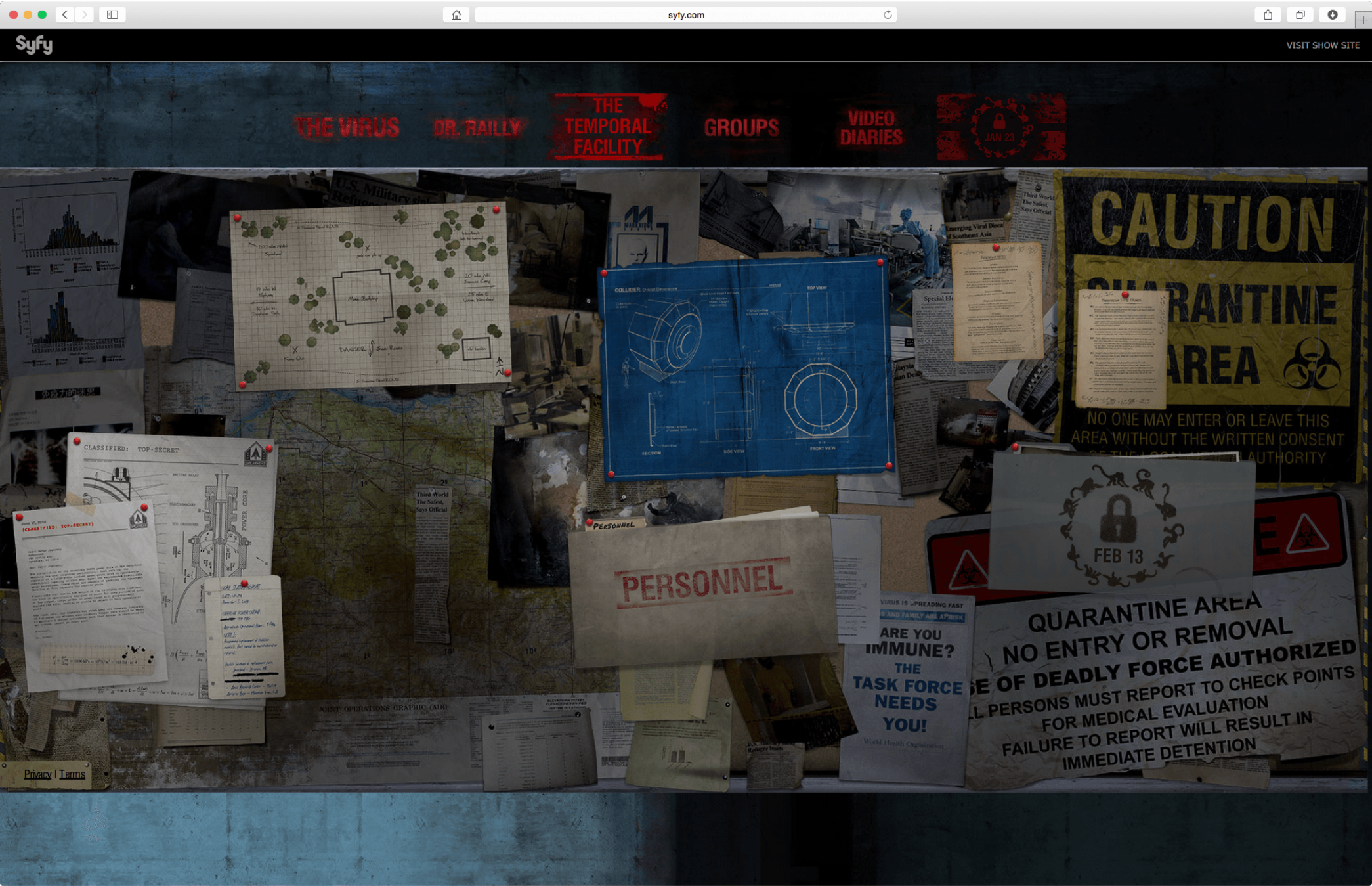 This page allows users to explore a wealth of information on the Temporal Facility, a fictional location in the show. Some of the show’s main events occur at this location and here the user can even find diagrams and maps that enhance the believability of the location.