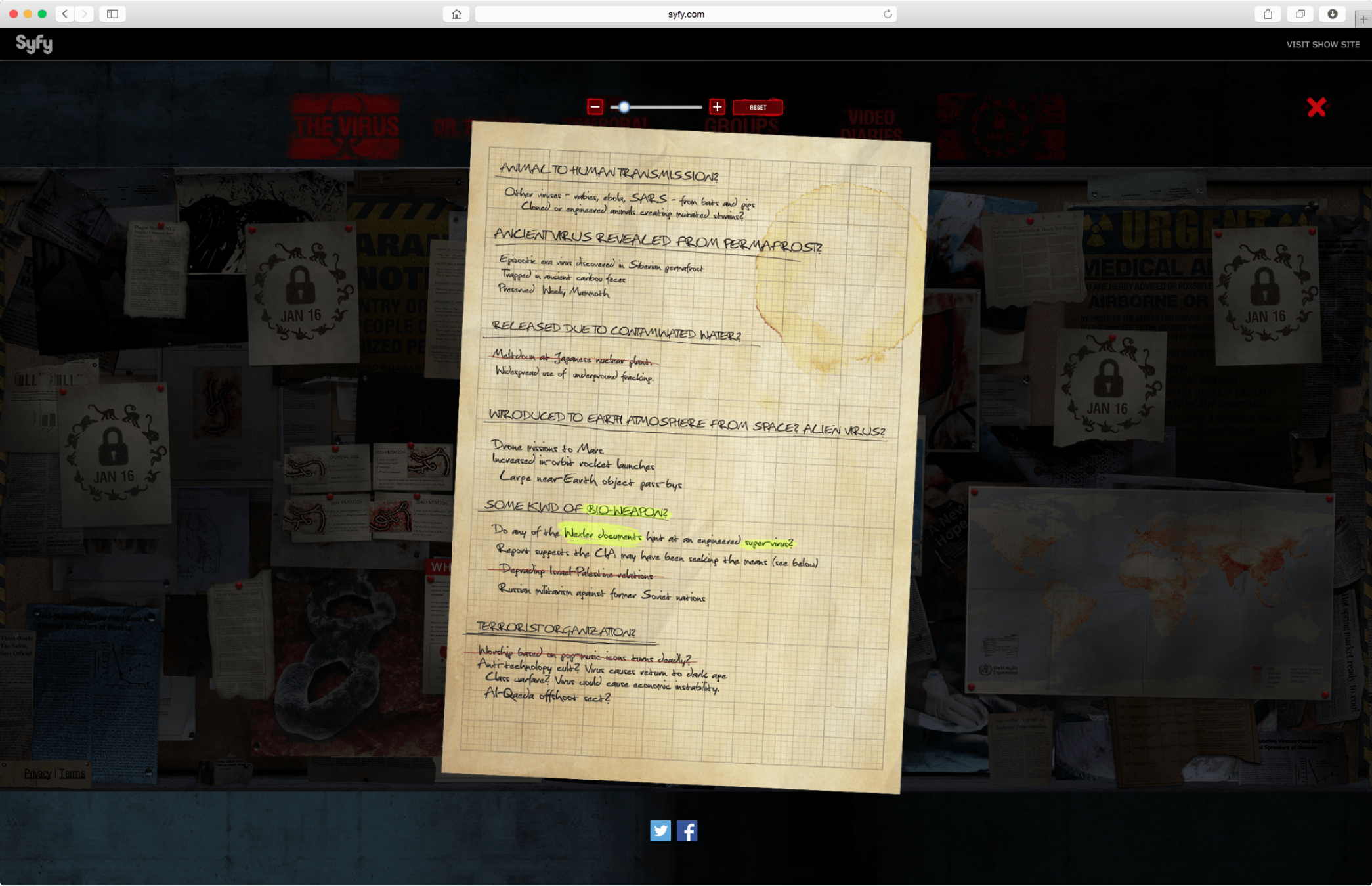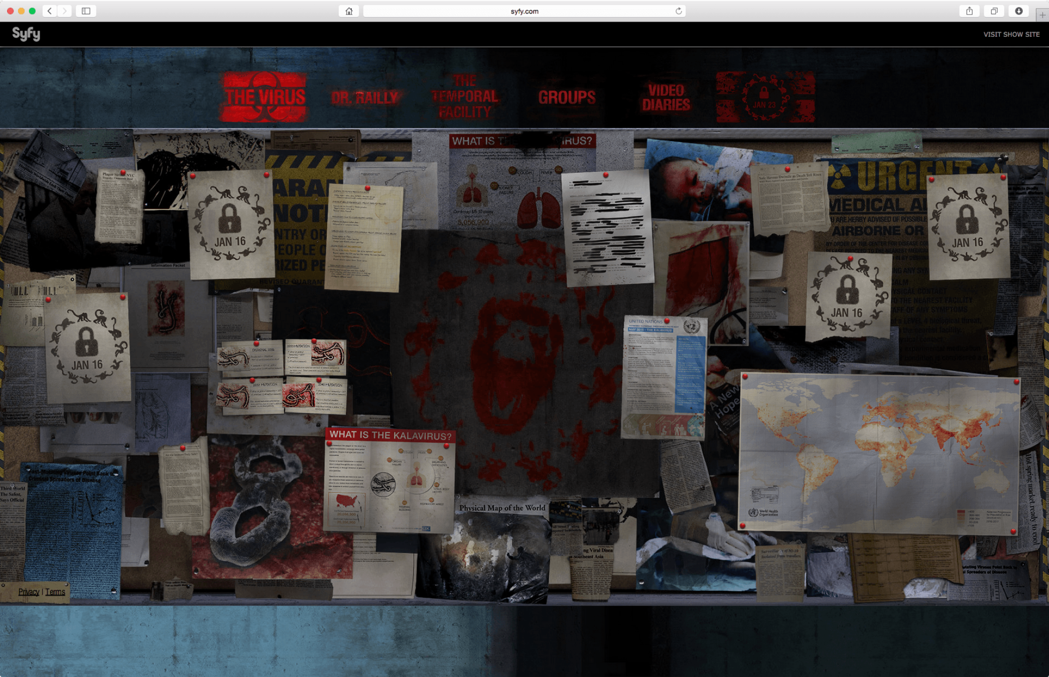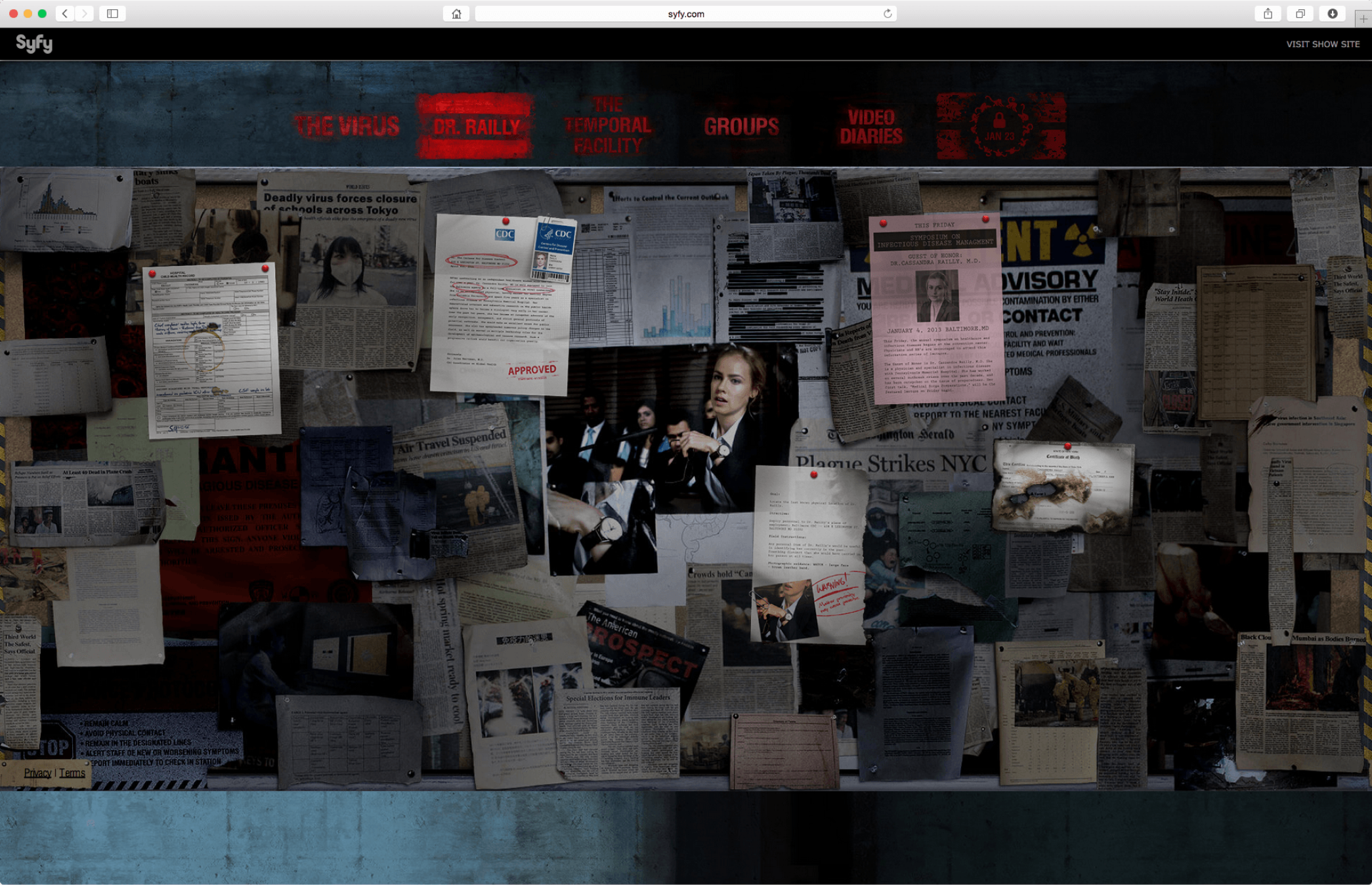 This page allows users to explore a wealth of information on the Temporal Facility, a fictional location in the show. Some of the show’s main events occur at this location and here the user can even find diagrams and maps that enhance the believability of the location.